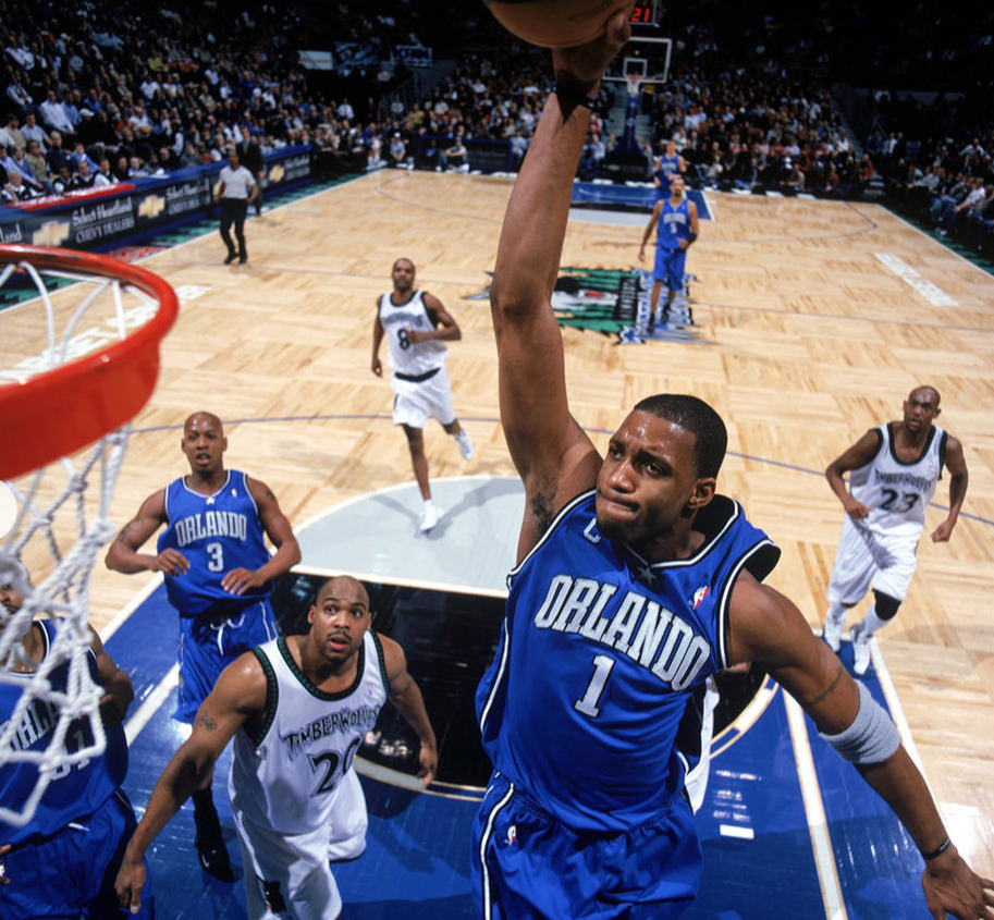 提到 “进攻万花筒”,特雷西・麦克格雷迪的名字绝对绕不开。魔术时期的麦迪,正值生涯巅峰,4 个赛季里 2 次捧起得分王奖杯(2002-03 赛季场均 32.1 分、2003-04 赛季场均 28.0 分),无论是干拔跳投的飘逸、突破上篮的灵动,还是急停跳投的精准,都让他成为联盟中最具观赏性的得分手。彼时的麦迪,进攻火力甚至被不少球迷认为压过同期的科比,他的每一次得分都能点燃球场气氛,成为无数球迷的青春记忆。